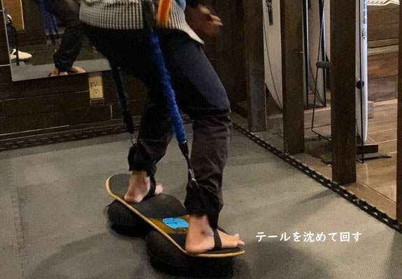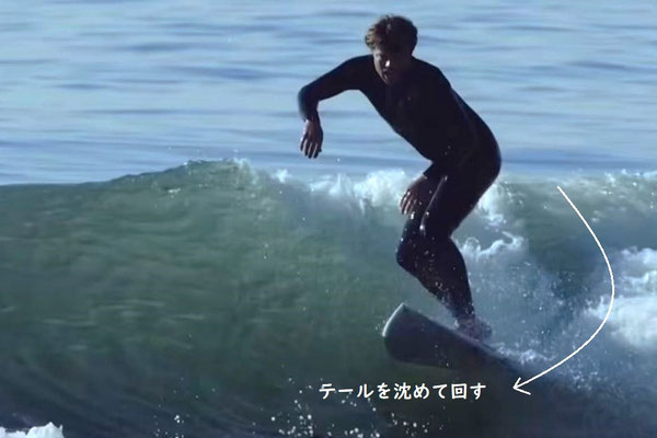 では最後に、テールを沈めて回す動作は