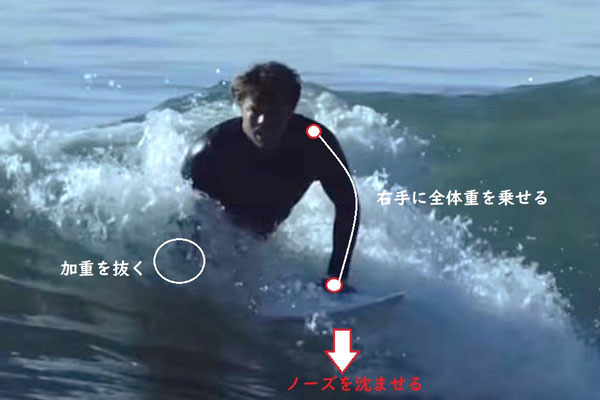 右手の力を使ってしまうとボードはボト