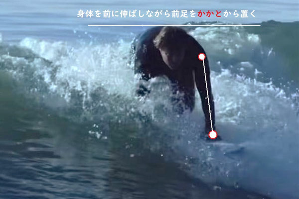 反発力で波のハイラインへ上がれる軸足