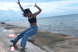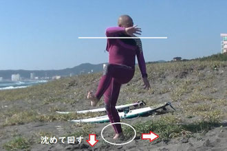 してボードを横へ向ける動作を連動させ
