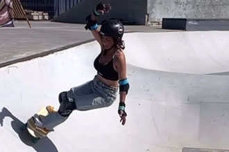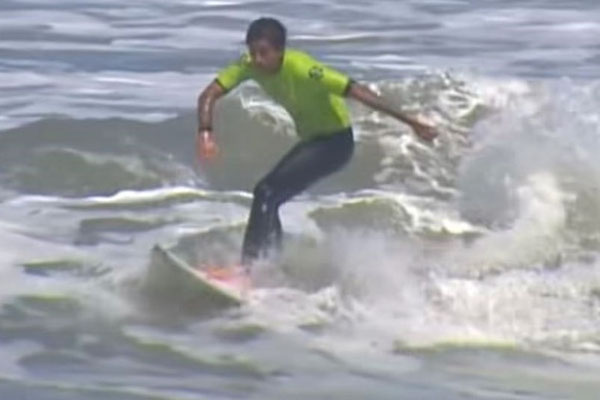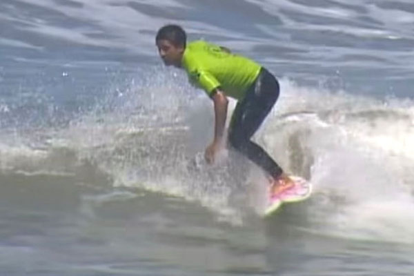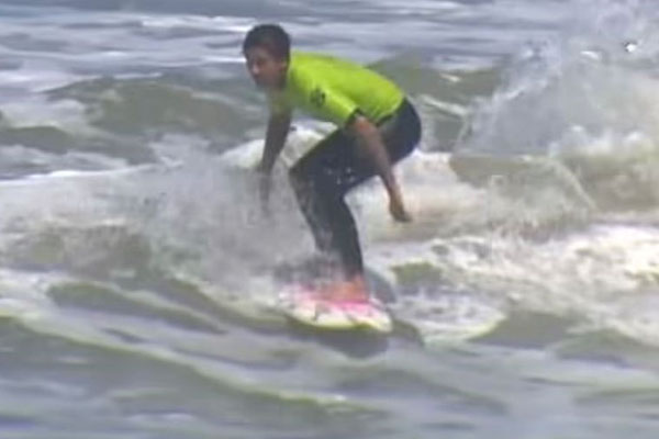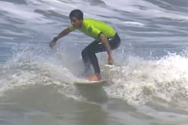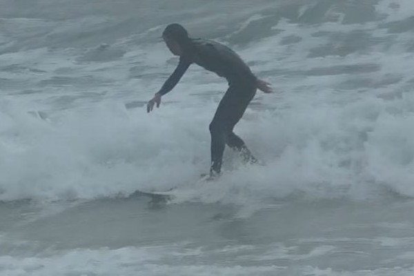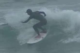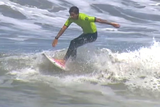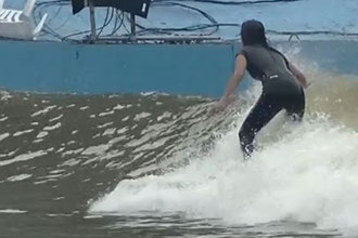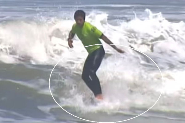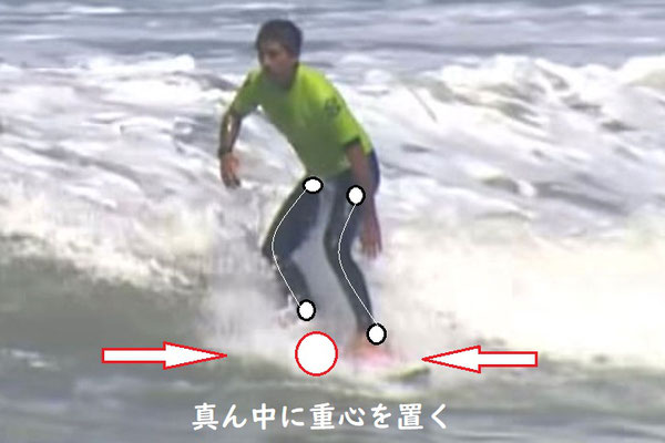 ❶ 前傾姿勢で後ろ足でノーズを上げ!!