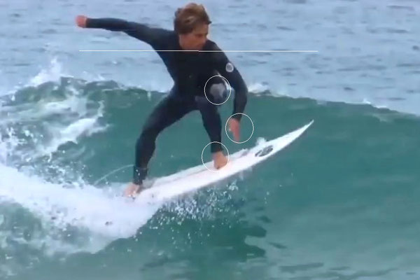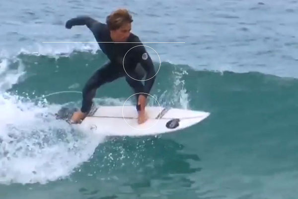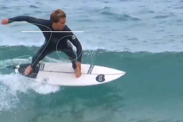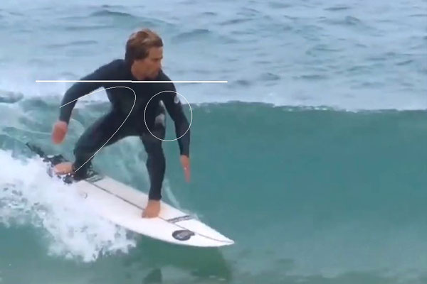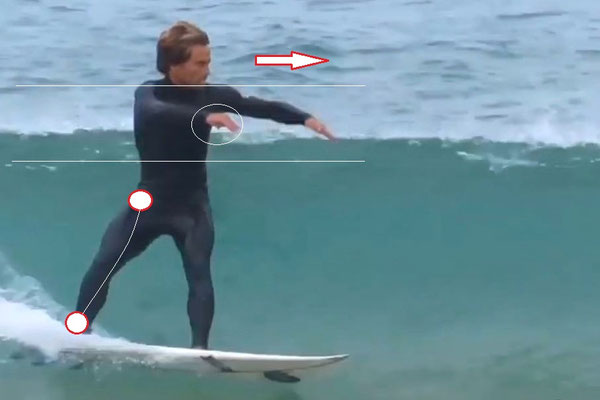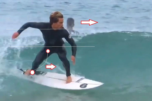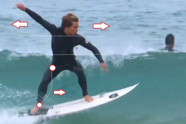 ボトムターンに入る時にも右手の振りを