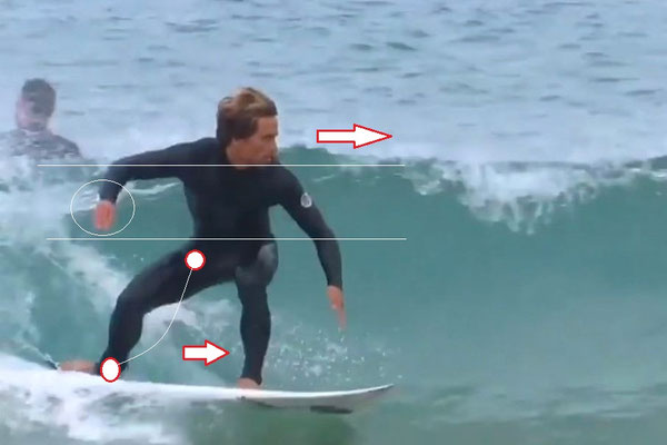 速いブレイクほど波のフェイスにへばり