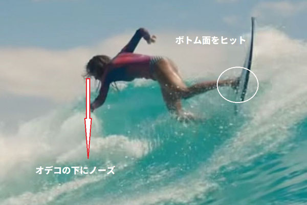 では、カノアの厚いうねりからすぐに崩