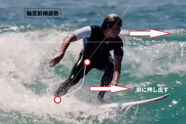 軸足加重を作り前足加重を抜きながらジ
