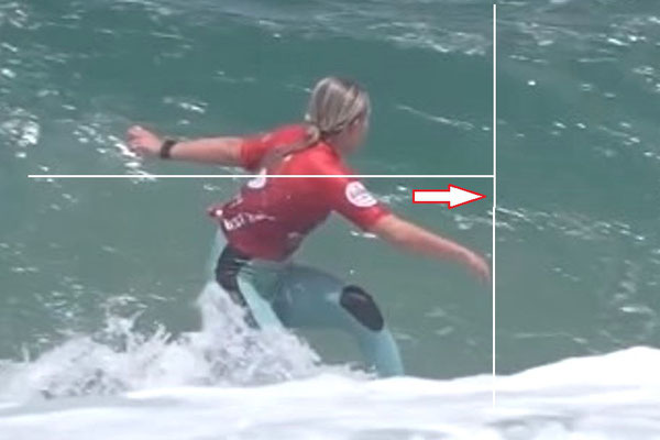 ボードが水平のまま走るとテールが波