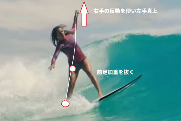 そして、前足加重を抜かないとボトム面