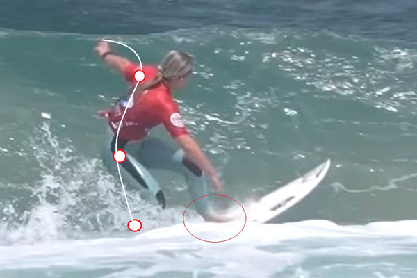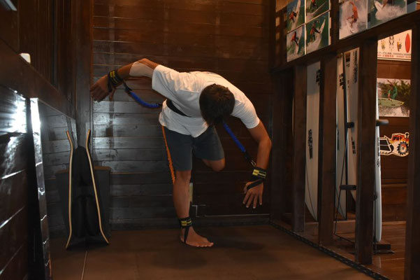 腹筋を使って身体を波側進行方向へ伸ば